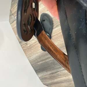 Made in Brazil. Used condition with visible wear on the leather footbeds, particularly around the toe and heel areas, and moderate scuffing on the bottom soles as shown in photos. Despite cosmetic wear, they remain structurally sound and ready for a new home. Perfect for beach days, summer outings, or casual chic wear.