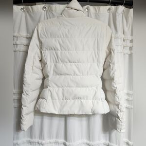 Stay warm and stylish with this elegant white puffer jacket. Perfect for chilly days, it offers both comfort and fashion.