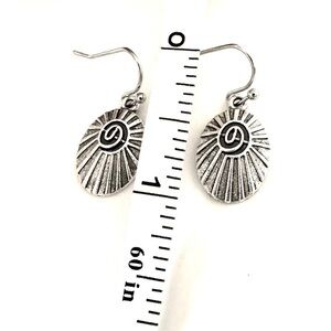 Vintage Style Oval Shaped Silver Tone Hoop Earrings.