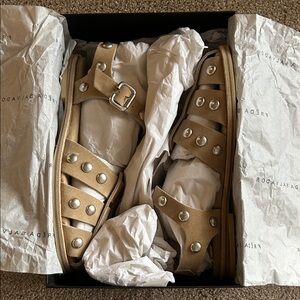 Freda Salvador Sera fisherman sandals, stucco suede with studs. NWT.