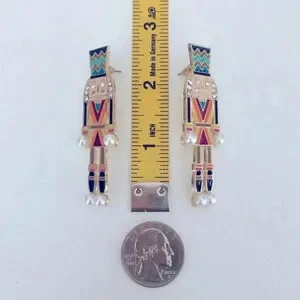Large Gold Multicolor Colorful Nutcracker Stud Earrings NWT