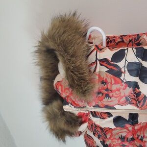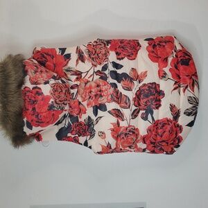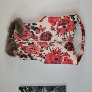 Offline By Aerie Floral Puffer Vest Size Med Faux Fur Trim Hood