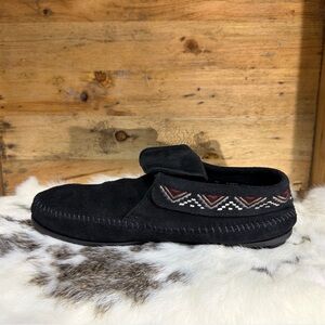 Classic black suede loafers. Comfortable slip-on design. Ideal for versatile wear.
