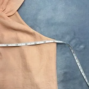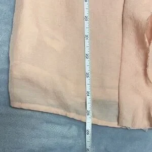 Great condition!! This is a beautiful preloved tank from Loft. Chic blouse with floral and ruffle detail. Soft peachy pink hue. One tiny pull in back. Please see 4th photo. Measurements are approximate and are taken laying flat.