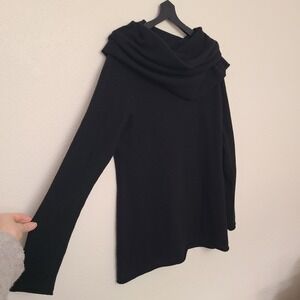 Aqua 100% Cashmere Black Cowl Neck Sweater LARGE Quiet Luxury Old Money Timeless