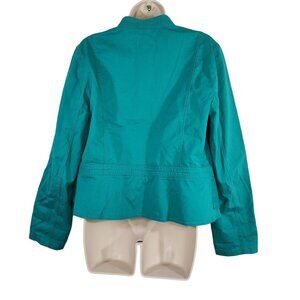 Ann Taylor Loft Green Twill Jacket Women Size L Long Slv Casual Work Preppy NEW