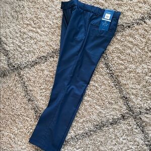 Stylish navy suit by Perry Ellis. Includes pants, white button down, vest, jacket and tie. Perfect for formal events. Size 10. Waist has hidden elastic stretch. Only the shirt and jacket were worn once. Like new. Pants have tags.