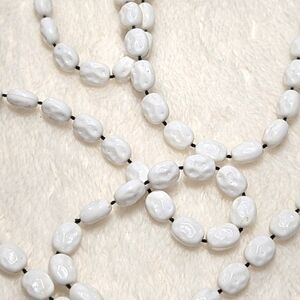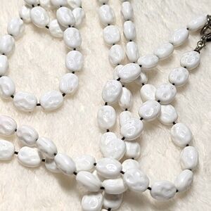 Vintage Sarah Coventry White Acrylic Beaded Necklace on Black Knotted Thread