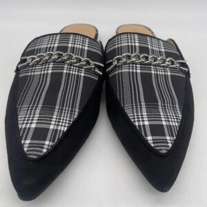 Ann Taylor Womens Black Pointed Toe Chain Slip Mules Size 9.5 Loafers Faux Suede