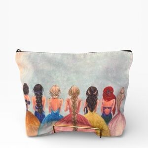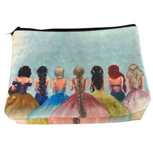 • 1 Disney Princess cosmetic / makeup zip pouch featuring princesses from the back with braided hairstyles