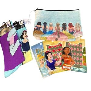 ✨ Disney Princess Bundle – Makeup Bag + 2 Crew Socks | Size 9–13 and 3 packs of blemish patches ✨