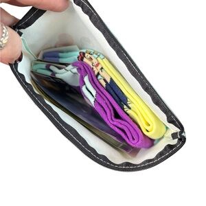 • Makeup bag features soft canvas-style fabric with zipper closure