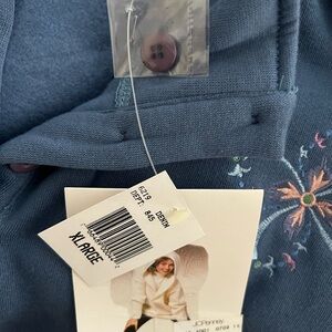 NWT women’s blue Chinawear by Morsly Sweatshirt With embroidered accents