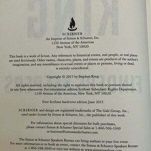Very good used condition, SMALL MARKER line on underside Stephen King's 'Finders Keepers' hardcover book.