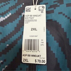 NWT Men’s 2XL Adidas Black and Teal Patterned Windbreaker Front Zip