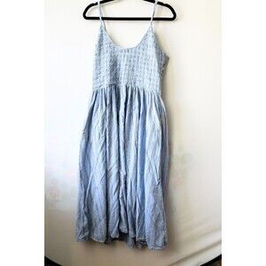 The Aerie XL Smocked Summer Dress in striped blue is a stylish and comfortable choice for the warmer seasons. This maxi dress features a sleeveless design with a pullover closure, making it easy to slip on and off. The smocked details add a touch of texture and charm, perfect for casual occasions during the summer and spring months. The long dress length provides a full coverage option for those looking for a relaxed and trendy look.