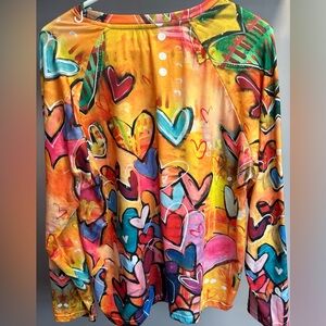 NO BRAND SHOWN Size XXL Vibrant Heart Pattern Sweatshirt