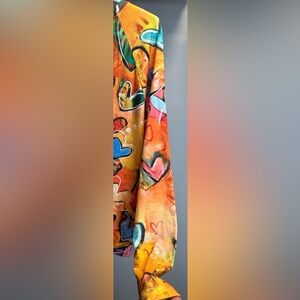 NO BRAND SHOWN size XXL, long sleeved sweatshirt. Add a burst of color to your wardrobe with this vibrant heart pattern sweatshirt in ORANGE, YELLOW, PINK, RED, BLACK, BLUE, PURPLE, GREEN and WHITE. Pit to pit measures 23 1/2 inches. From shoulder to hem, it measures 25 inches. 100% polyester. Perfect for casual outings and cozy days.
