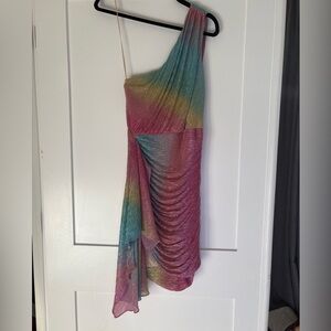 Prism One Shoulder Mini Dress in Rainbow. Size 8. Worn once. In excellent condition. Sold out on revolve