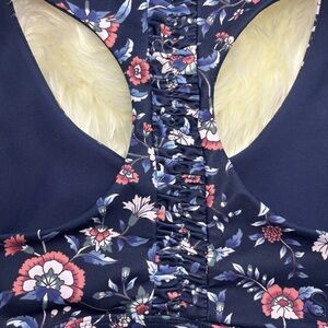 Soul by SoulCycle Ruched Blue and Pink Racerback Sports Bra with Floral Print