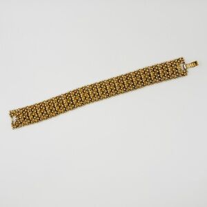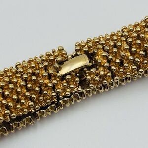 Stunning vintage Sarah Coventry statement bracelet, beautifully crafted and made in Canada. This bold piece features a richly textured gold-tone beaded design, with raised granulated detailing that gives it a luxurious, sculptural look.