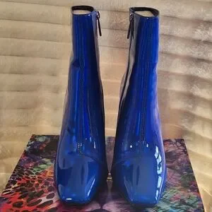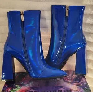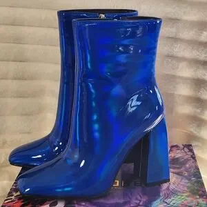 CAPE ROBBIN Blue Hayward Blue Patent Chunky Heel Boots