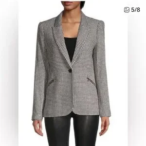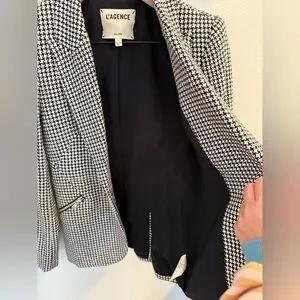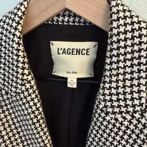 L'Agence tailors their Candra blazer in tweedy houndstooth suiting for a polished revamp. Notched lapels. Front button closure. Zip waist pockets and cuffs. Lined.
