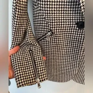 L'AGENCE Candra Zip Pocket Houndstooth Check Blazer