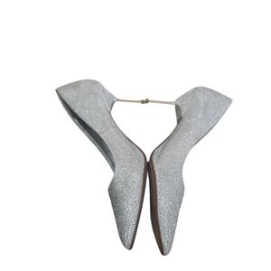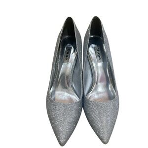 Elegant dune London silver metallic Bellas heels pumps with a sparkling finish. Kitten heel. Leather sole. Wore once-like new. Small spot on back of one heel-see photo. Perfect for any occasion.