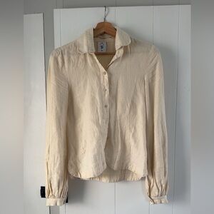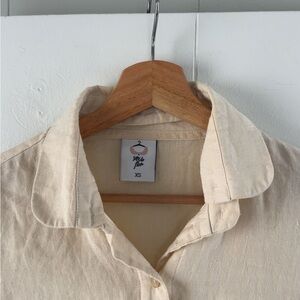 Linen shirt from Sondeflor in size XS. Has a detachable collar for different wearability!