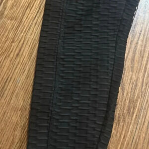 Size is not listed but are about a smalll or medium. Waist side to side measures 12 inches unstretched. It does stretch from there. It will stretchch comfortably around 17inches wide to side.