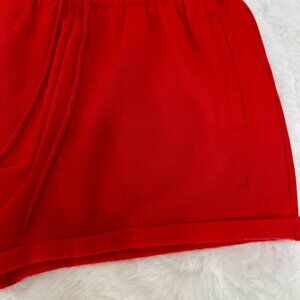 Women’s PINK Victoria’s Secret shorts in a bold red color. Designed with a soft, comfortable fabric and an elastic waistband with adjustable drawstring for an easy, relaxed fit. Features cuffed hems and a sporty lounge style that’s perfect for relaxing at home, casual wear, or running errands. Bright color adds a fun pop to any comfy outfit.