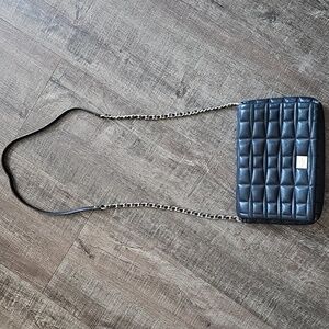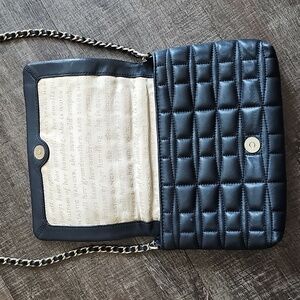 Chic black quilted design. Perfect for day or night. Features a sleek chain strap. leather has light signs of wear. strap in good condition. inside has some light stains. see photos for details