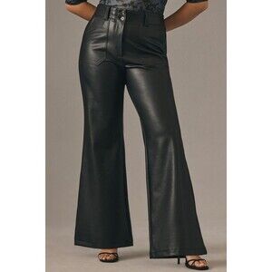 Anthropologie Maeve Naomi Wide Leg Flare Faux Leather Pants Black High Rise Sz 6