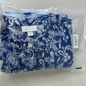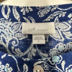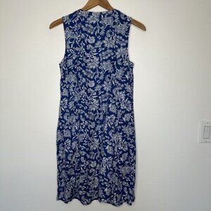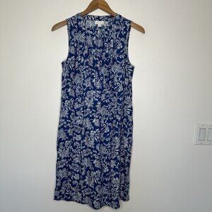 J Jill Love Linen Dress Blue Floral Shift Sleeveless Small