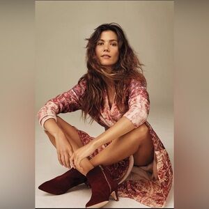 NWOB Anthropologie Calf Hair Pointed Toe Kitten Heel Booties Red Brown Maroon 6