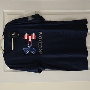 NWT Under Armour Amrrican Flag UA Large Logo Freedom T-Shirt Navy Blue