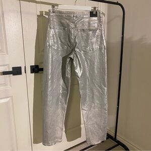 Metallic silver pants with a baggy straight leg design. Eye-catching and modern. Ideal for a chic look. ▫️Metallic High Waisted Baggy Straight Leg Jean ▫️American Eagle ▫️Size 6 Regular ▫️Coating - 100% acrylic ▫️Fabric - 88% cotton / 11% recycled cotton / 1% elastane ▫️Only wore twice ✅Excellent condition