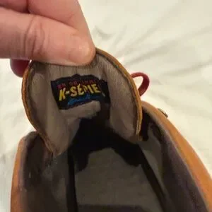 Stylish K-Swiss leather hiking boots. Durable , waterproof, and rugged. Red laces for a bold look. Only worn 2 times