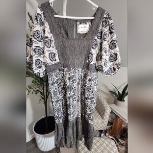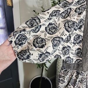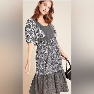 Chic midi dress with floral pattern. Puff sleeves add elegance. Perfect for any occasion.