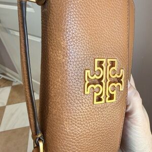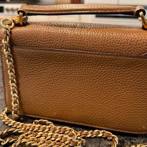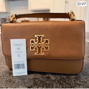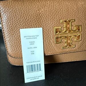 Tory Burch Britten top handle mini bag with removable chain strap . Holds iPhone max pro it is loved but good condition. A few Faint fading marks on the top of bag - see photo. Inside clean . Tag inside. Questions? Leave a comment below!