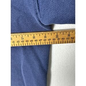 The product is a vintage 90's Youth Center Swoosh Nike blue hoodie in size XL (18-20). This unisex kids hoodie features a pullover style with long sleeves, perfect for boys who love the 90s theme. Made in the USA, the hoodie is a classic piece of clothing that combines retro style with modern comfort. The Nike brand adds a touch of authenticity and quality to this unique and nostalgic find.