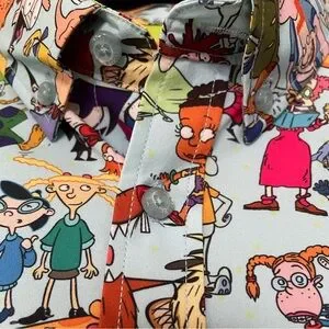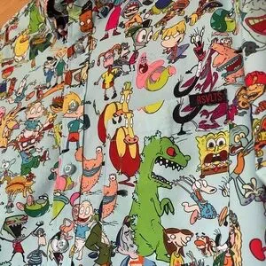 Colorful cartoon print shirt by RSVLTS. Features playful characters from our favorite Nickelodeon cartoons on a light blue background. Perfect for casual wear. Never worn.