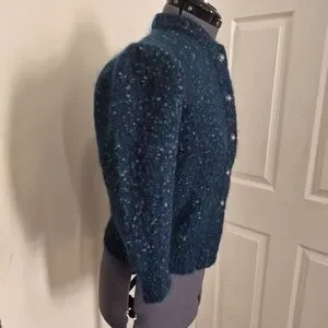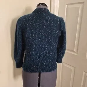 Vintage Haur Hwa Teal Blue/green Fuzzy Wool Cardigan Sweater w/ Colorful Flecks, Size M