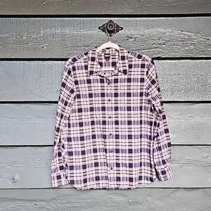 Catbells Long-Sleeve Shirt Navy Plaid sz XS Women's