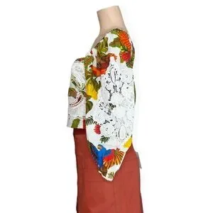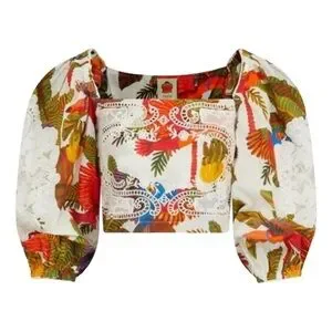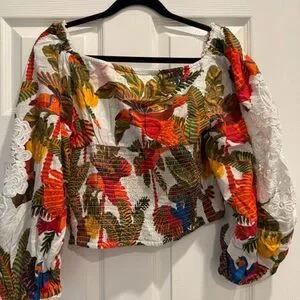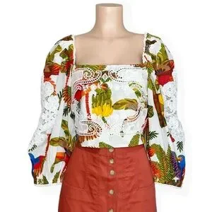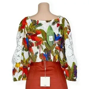 NWT Farm Rio Forest Birds crochet and guipure lace Cropped Blouse Size L