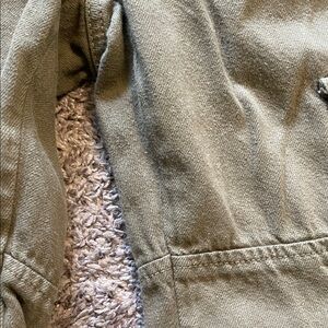 Comfortable olive cargo pants with multiple pockets. Ideal for casual wear. In good used condition, has light piling throughout the garment