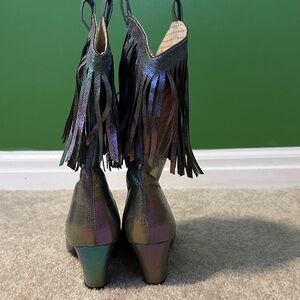 Elevate your look with these shimmering fringe heeled boots, perfect for making a statement. Only worn a handful of times, still have a lot of life left in them! These would be so fun for a Sabrina, Chappel Roan, or Harry Styles concert outfit!