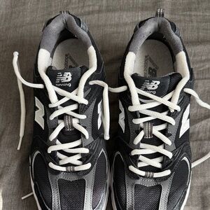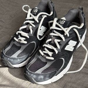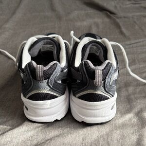 Sleek New Balance 530 shoes in charcoal and white. Ideal for running and everyday comfort. In good condition in the front of the shoes it has scuff marks but overall in there good for use.