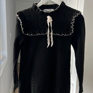 ZARA HIGH COLLAR BLACK KNIT LONG SLEEVE MINI DRESS BOW Gothic Preppy Academia M